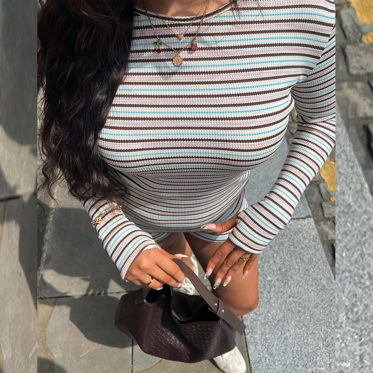 Multicolor Striped Dress Set for WomenCasual Slim-fit Outfit