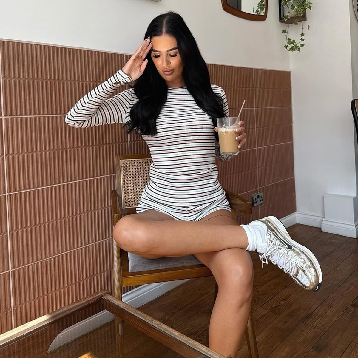 Product information:Multicolor Striped Dress Set for WomenCasual Slim-fit Outfit Multicolor Striped Dress Set for WomenCasual Slim-fit Outfit Multicolor Striped Dress Set for WomenCasual Slim-fit Outfit